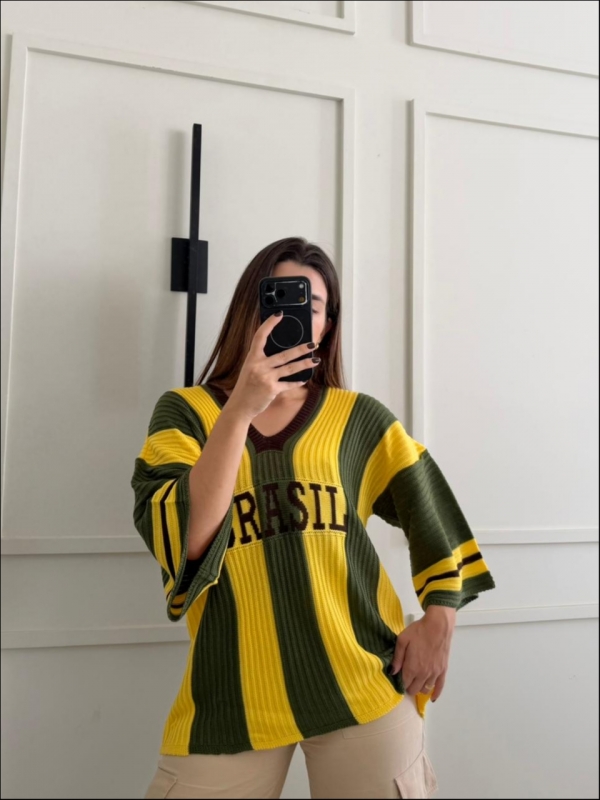 BLUSA LISTRADA BRASIL - VERDE MILITAR/AMARELO/MARROM