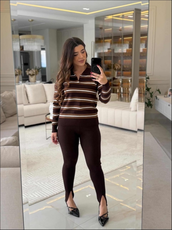 Informações do produto: BLUSA MANGA LONGA LISTRADA ARY - MARROM/BRONZE/DUNAS