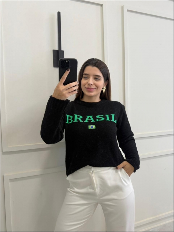 Informações do produto: BLUSA MOUSSE BANDEIRA - PRETO
