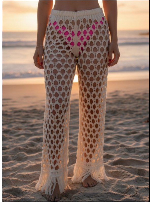 Calça rendada barra com franja