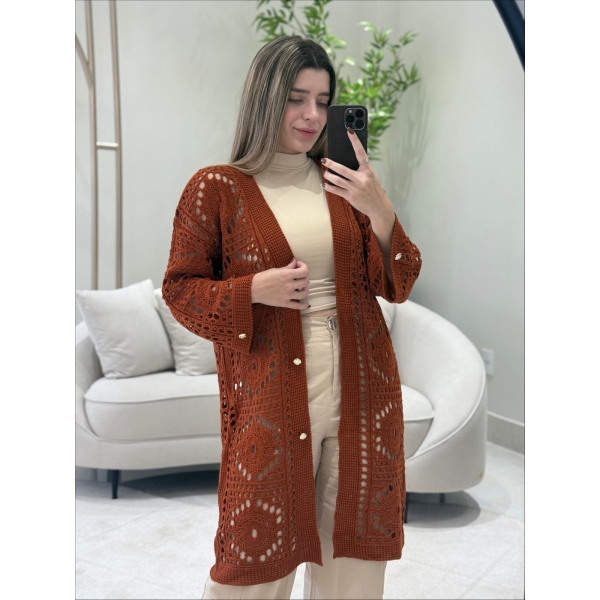 Informações do produto: CARDIGAN RENDADO ADELAIDE - TELHA