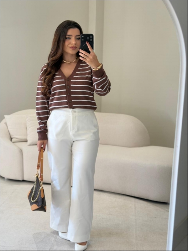 CASACO LISTRADO ROSANA - Marrom com off white