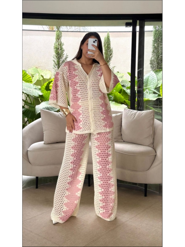 CONJUNTO BICOLOR GLEICE - OFF WHITE/ ROSA BEBE