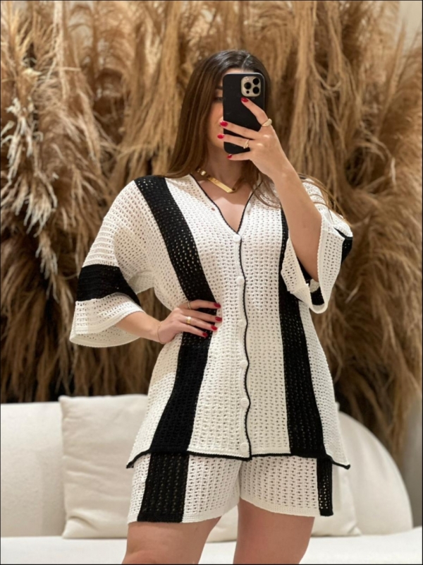 CONJUNTO SAIDA SHORT - BICOLOR - OFF WHITE/ PRETO