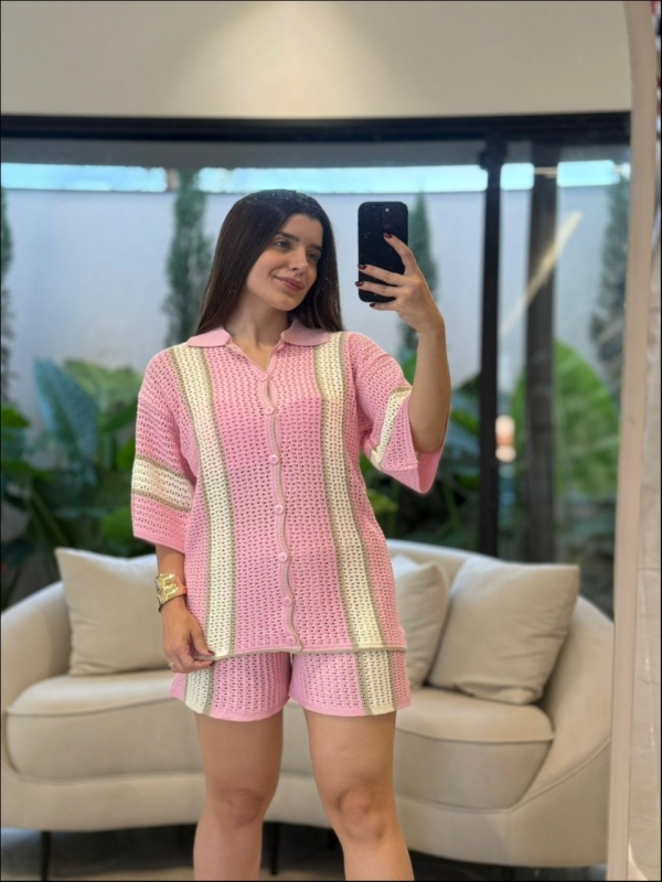 CONJUNTO SAIDA SHORT - ROSA BEBE / OFF