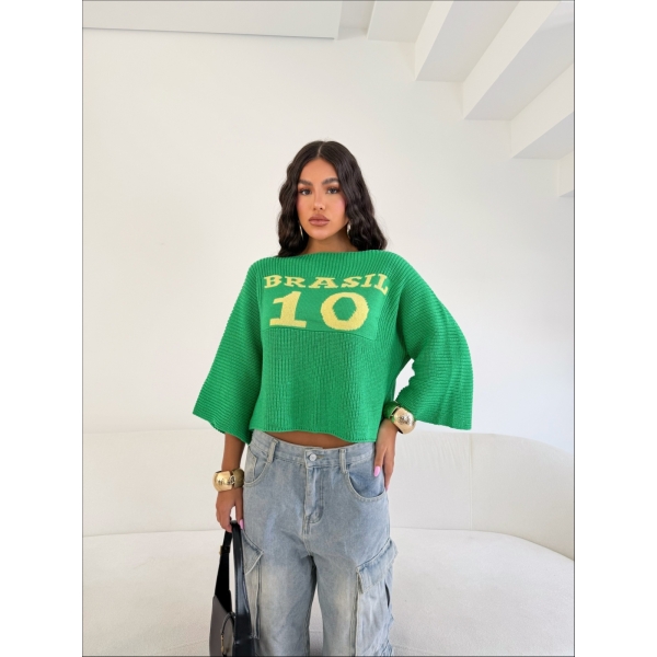 MAXI CROPPED MANGA FLARE BRASIL - VERDE BANDEIRA
