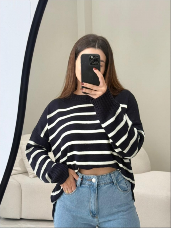 Informações do produto: MAXI TRICOT LISTRAS CHLOE - Azul marinho com off white