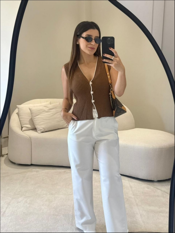Informações do produto: REGATA BICOLOR - Caqui com off