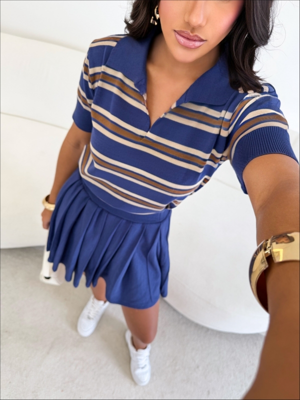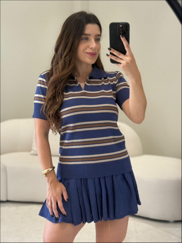 TSHIRT LISTRAS ARY - AZUL MARINHO/AREIA
