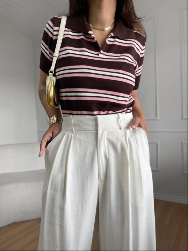 TSHIRT LISTRAS ARY - MARROM COM ROSA