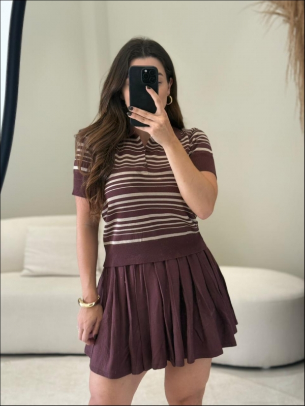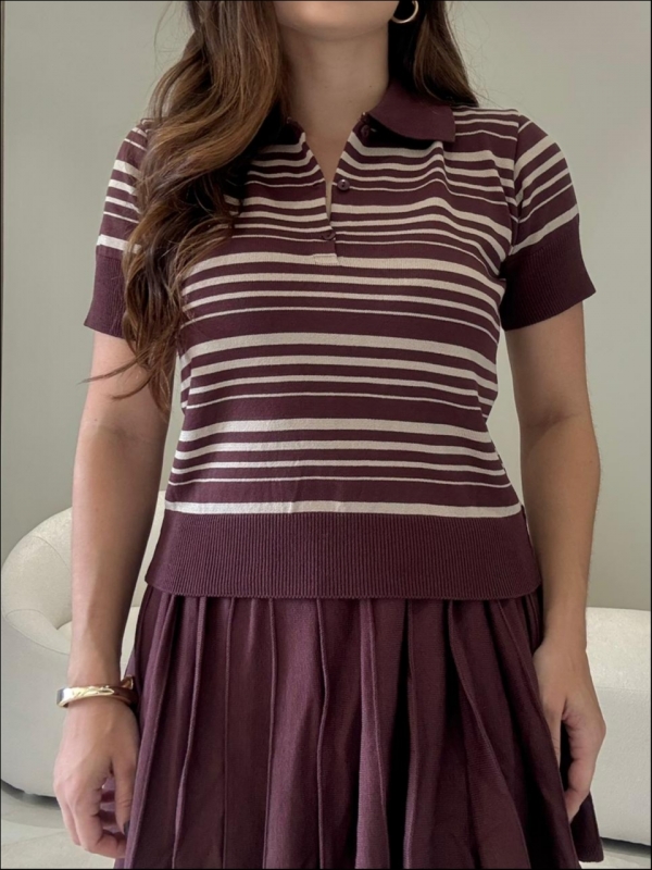 Informações do produto: TSHIRT POLO LISTRAS - Marrom canela com Areia