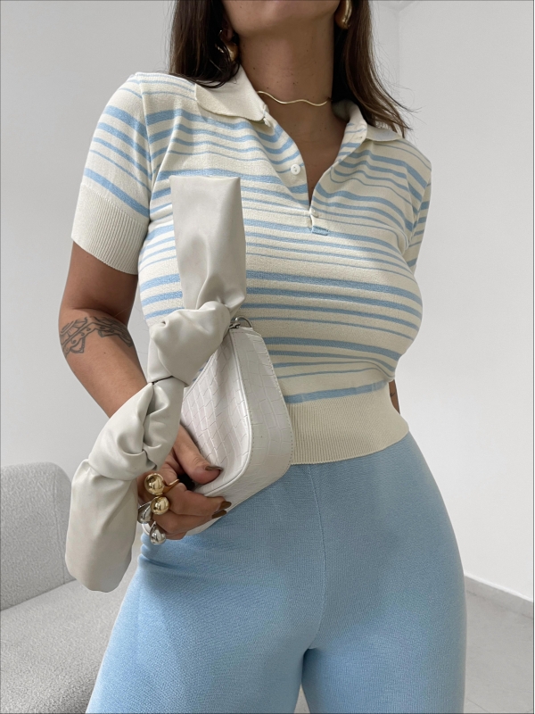 TSHIRT POLO LISTRAS - OFF WHITE/ AZUL BEBE