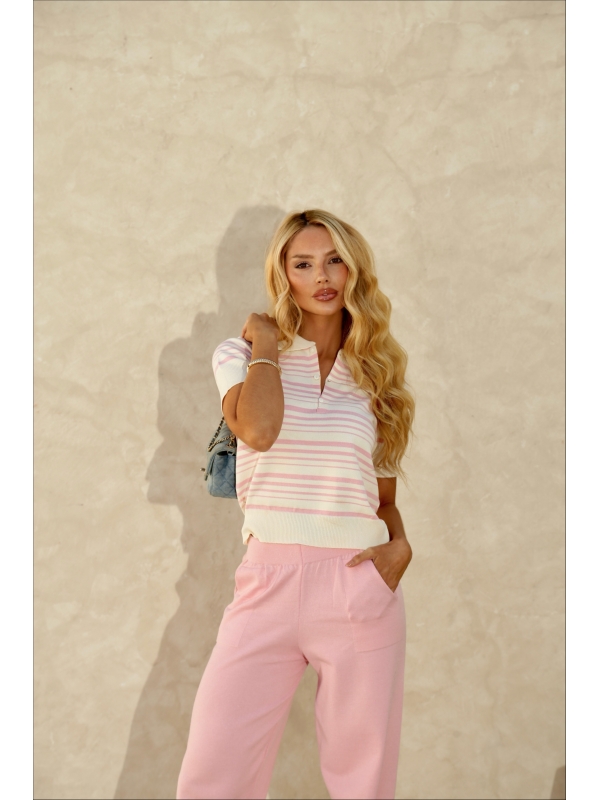 TSHIRT POLO LISTRAS - OFF WHITE/ ROSA BEBÊ