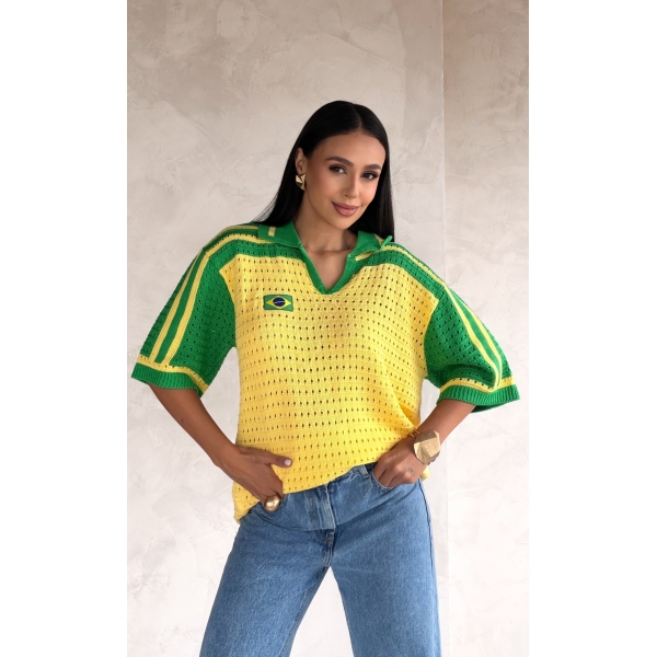 TSHIRT RENDADA BRASIL - BRANCO/AZUL