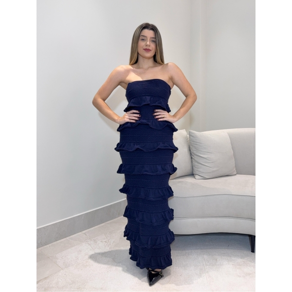 Informações do produto: VESTIDO BABADOS MALIBU - Azul marinho