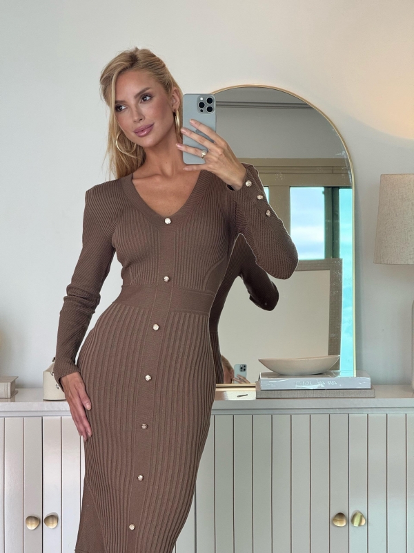 VESTIDO CANELADO HALEY - Caqui