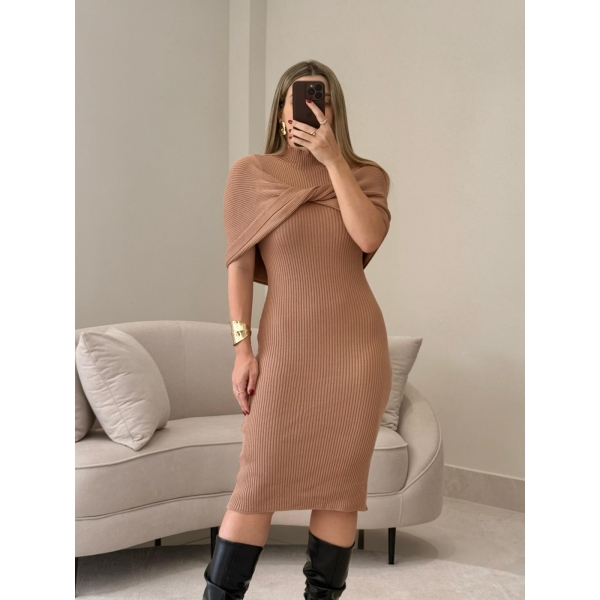Vestido em modal canelado com detalhe de lenço torcido