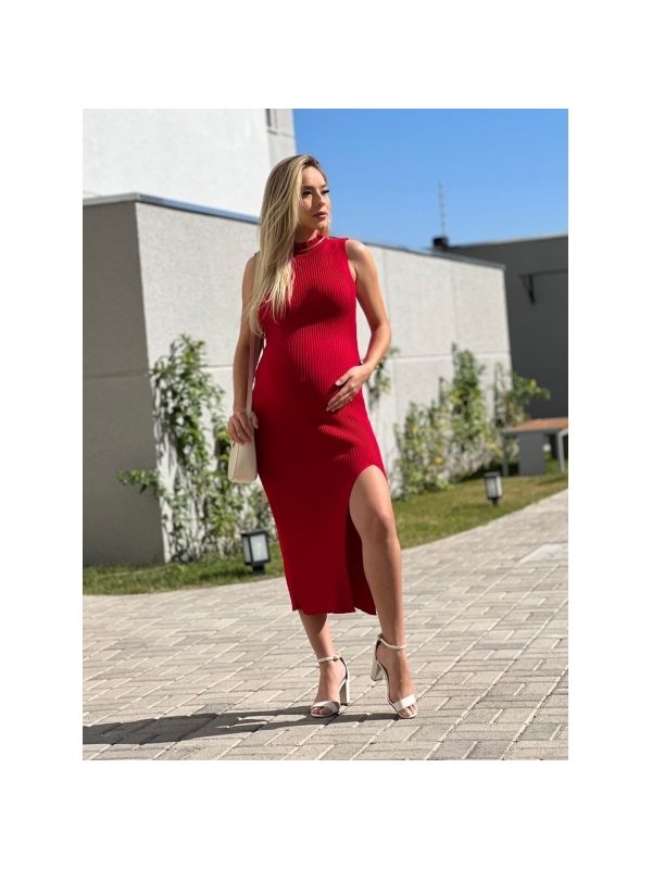 Informações do produto: VESTIDO CANELADO LAUREN VERÃO - Vermelho vivo