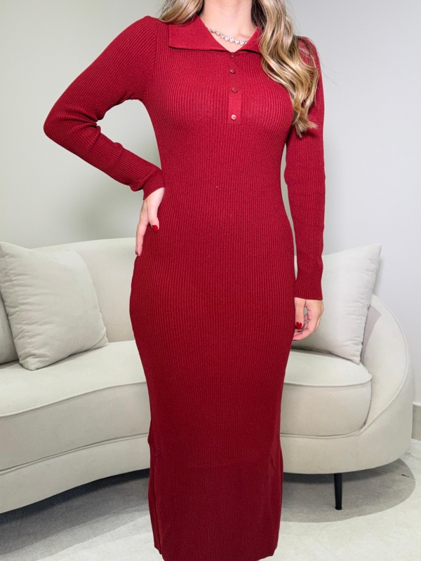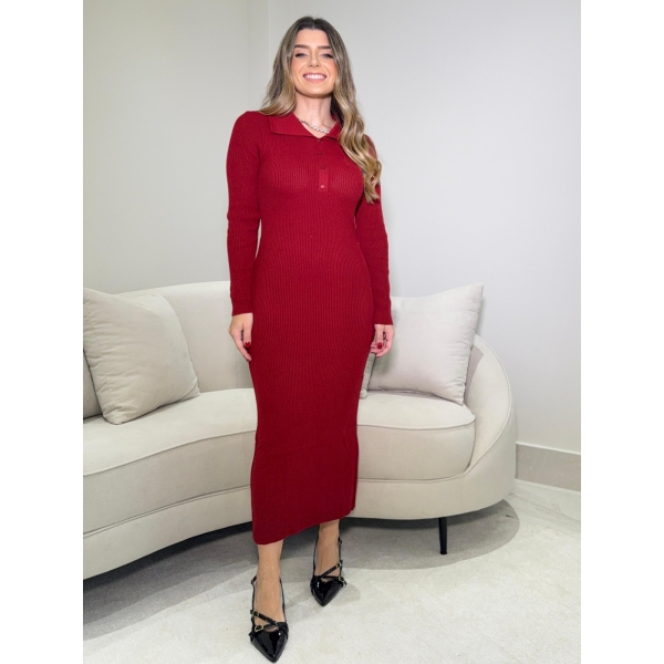 Vestido em modal canelado com gola polo decote com botões